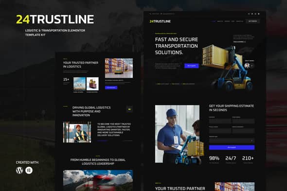 24TrustLine is a modern and professional Elementor Template Kit specially crafted for logistics, freight, and transportation service companies. This kit is designed to help businesses present their services effectively, highlight their expertise, and convert visitors into leads with strategically placed quote forms and clear call-to-actions.