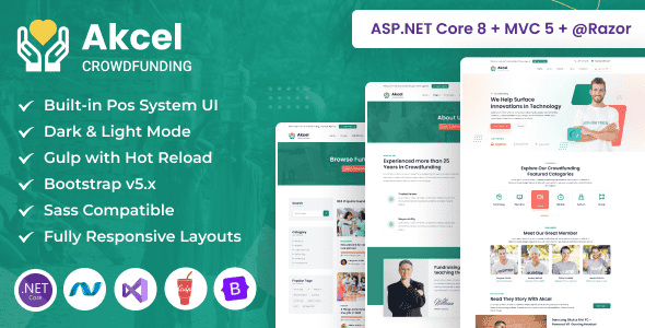 Akcel – Crowdfunding & Charity ASP.NET Core & MVC Bootstrap Template