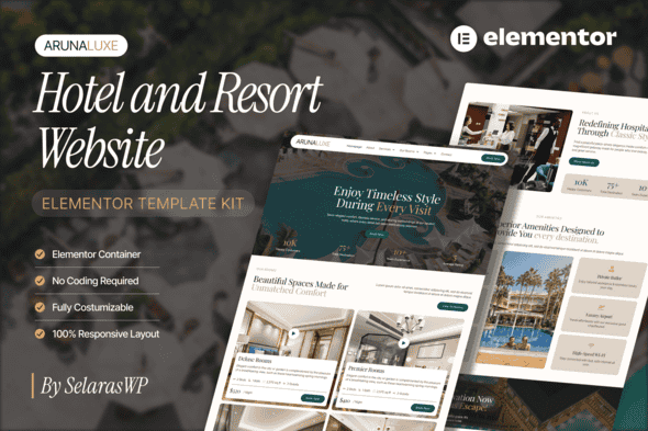 ArunaLuxe is an Elementor Pro Template kit featuring a visually stunning, immersive, and user-friendly design that makes it easy to showcase your property’s unique charm. From elegant room showcases and breathtaking galleries to seamless booking inquiry forms, this template kit provides everything you need to create a captivating online experience that converts visitors into guests.