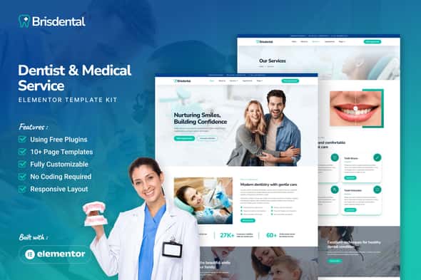 Brisdental is an Elementor template kit designed specifically for dentist and medical services. It includes over 10 pre-built templates with a clean, modern design and a highly professional layout. This versatile template kit is perfect for any dental care or medical service, including dental clinics, dental surgeons, healthcare providers, doctor websites, and more.