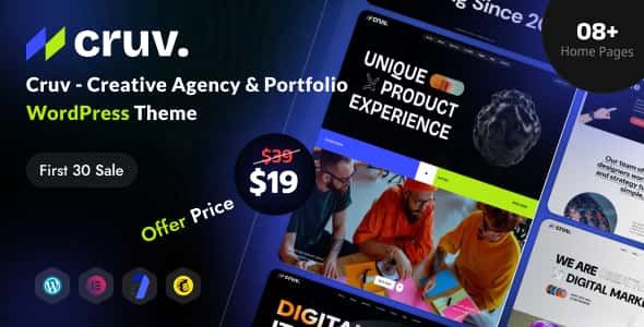 Cruv is a modern, stylish, and highly flexible WordPress theme crafted for creative agencies, freelancers, designers, and portfolio-driven professionals. With its striking visuals, clean aesthetics, and smooth interactions, Cruv helps you build a standout online presence that truly reflects your creativity.