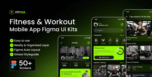 Fitova-Fitness & Workout Mobile App Figma UI Kits