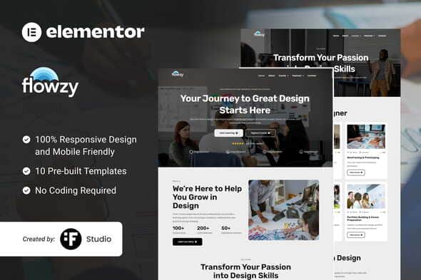 Flowzy is a modern Elementor Template Kit designed for UI/UX courses, design schools, and creative service websites. Built with the free version of Elementor, it offers a smooth editing experience without any coding skills required.