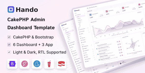 Hando is a premium CakePHP 5 admin template for seamless web development. Powered by Bootstrap v5.3.3 and CakePHP V5.1. It delivers a clean, responsive, and fully customizable design. It’s intuitive interface ensures compatibility across all devices and browsers, making it the perfect foundation for diverse web projects.