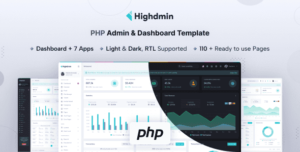 Highdmin is a premium admin template crafted to simplify web development. Built with PHP 8x, Bootstrap 5 and modern web technologies like HTML5 and CSS3, this template is fully responsive and highly customizable. Designed with precision, Highdmin features a clean and intuitive interface that effortlessly adapts to any device or browser, making it a versatile choice for any project.