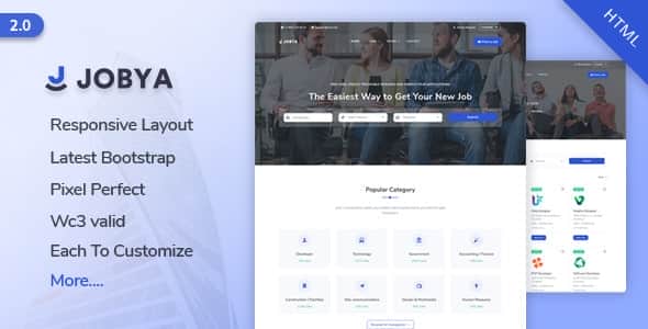 Jobya is fully Responsive Job Board HTML Template included 24 pages HTML files are well organized and named accordingly so it’s very easy to change any and all of the design. Our Template files are built with Bootstrap v5.3.2. Jobya has a complete solution for job portal, career, resume, directory, freelancer, employer, job listing, blogs, user pages, and portfolio. It’s easy for customize, user and developer friendly to make a job listing website.