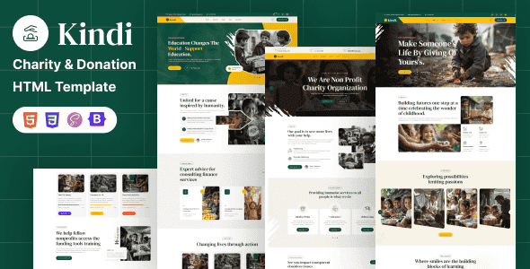 Kindi – Charity & Donation HTML Template is a clean, modern, and fully responsive template designed for charity organizations, NGOs, fundraising campaigns, and non-profit projects. Built with HTML5, CSS3, and Bootstrap, it offers a professional layout with smooth animations, intuitive navigation, and an engaging user experience.