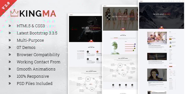 KingMa – Creative Business One-Page HTML Template:KingMa is a powerful and original responsive & parallax HTML template. Elegant Execution of this template is achieved by the great combination of Classy Style with Refinement.Perfect to promote your work or your business. An eye for a detail makes its design perfect to meet needs of creative people, digital agencies and services. This template is Empowered by the Latest Advancements in HTML5 & CSS3 Animations to provide you with first class User Experience. It also comes with a Working Ajax Contact Form. This Template is designed in a Clean and Minimalistic Style. It is Fully responsive, Very Flexible, Easy for Customizing and Well Documented. Main Features of this Template: