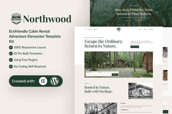 Northwood – Eco-Friendly Cabin Rental Adventure Elementor Template Kit