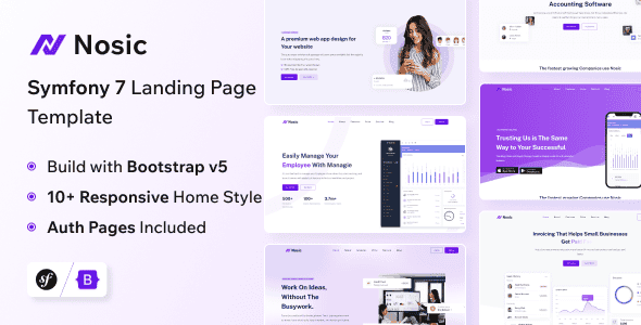 Nosic is a Startup Landing Page, Responsive, quick, and easy customizable Modern Startup Landing Page Template that comes with Symfony pages in 8 home page variations with 2 Authentication pages. It’s fully responsive and built with Bootstrap v5. Users will love your site because it gives them a unique user experience (UX), clean, modern & beautiful design. You will be easily able to customize it for your needs.