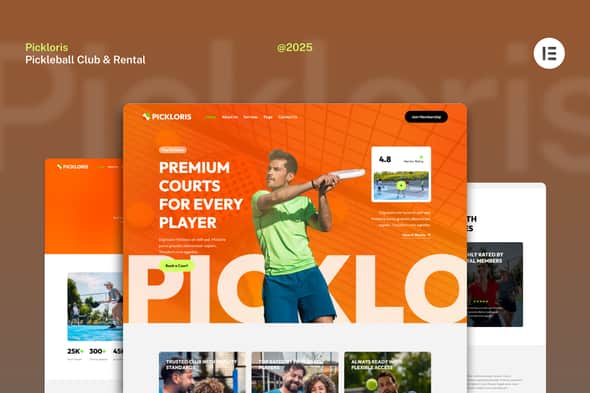Pickloris – Pickleball Club & Rental Court Website Elementor Template Kit