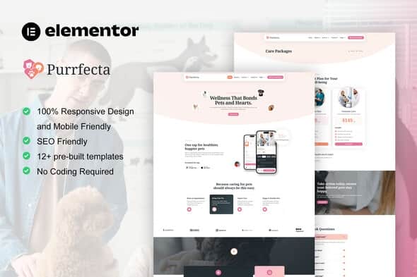 Purrfecta is an Elementor Pro Template Kit for Veterinary & Pet Care website. This template kit is designed for veterinary and pet care website, including pet related services such as veterinary, pet daycare, pet salon, pet centers, pet hospital, veterinary clinics, etc. It has 12+ pre-built templates, so you can easily make cool website to show your professional veterinary & pet care services with this elementor template kit.