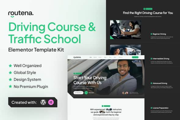 Crafted for the dedicated driving instructor and the modern traffic academy, Routena is your ultimate solution for elevating your educational business online. Powered by the robust capabilities of Elementor and WordPress, this template kit empowers you to effortlessly construct a trustworthy, professional website for your driving school or defensive driving course. Whether you are offering private lessons, managing a fleet of student vehicles, or running a full-scale commercial licensing center, Routena is designed to captivate your prospective students with its intuitive layout and seamless user experience.