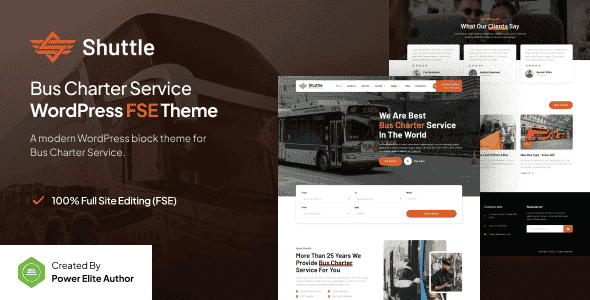 Introducing Shuttle, a WordPress theme designed for Bus Charter Services, Transport Companies, and related businesses. Fully compatible with the WordPress Block Editor and powered by the Gutenverse plugin, this theme offers a professional design with a 100% responsive layout and is easy to customize—no coding required.