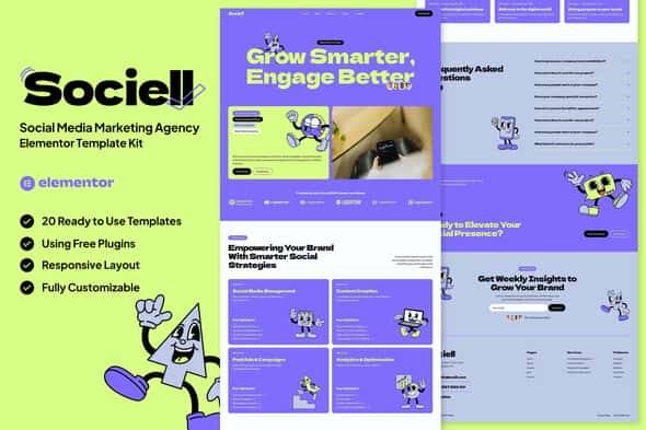 Sociell – Social Media Marketing Agency Elementor Template Kit (NOT A WordPress Theme) crafted for modern digital agencies, content studios, social media managers, and creative marketers who want a bold, clean, and professional online presence. Designed with a minimal yet polished aesthetic, Sociell helps you showcase services, highlight case studies, present your team, and convert visitors into loyal clients with confidence.