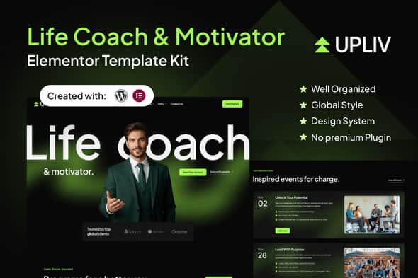 Crafted for the modern life coach, motivational speaker, and wellness consultant, Upliv is your ultimate solution for building an inspiring and impactful online presence. Powered by the dynamic duo of Elementor and WordPress, this template kit empowers you to effortlessly create a sleek, professional website for your coaching practice or personal brand. Whether you’re booking clients, sharing your message, selling courses, or building a community, Upliv is designed to captivate your audience and convert visitors into dedicated followers with its seamless user experience and lead-generation-focused layout.