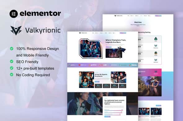 Valkyrionic – Esport Team & Gaming Elementor Pro Template Kit