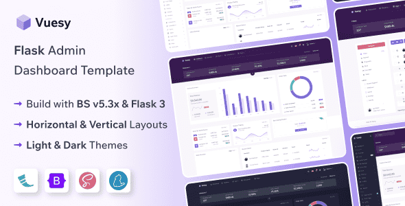 Vuesy – Flask Admin & Dashboard is a simple and beautiful admin template built with Bootstrap 5 and Flask 3x. It comes with lots of reusable and beautiful UI elements, widgets, and more features. This is the ideal template for your next dashboard or admin web app project.